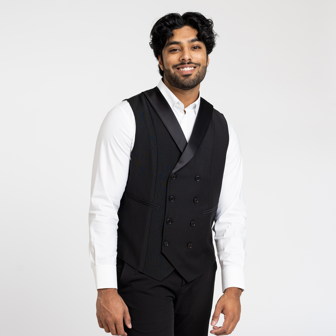 Men S Black Double Breasted Shawl Collar Vest Stock Mfg Co